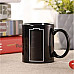 - HIGH QUALITY - This elegant black mug has an optimal capacity of 330 ml. It is made of ceramics approved for contact with food and beverages. It does not contain any harmful substances that could enter the liquid. Thermosensitive paint, turns green when exposed to hot drink or water. The ceramics from which the mug is made keep the liquid at a high temperature for a long time. Thanks to the battery symbol, you can see when the drink starts to cool down . A comfortable, large handle ensures a stable and strong grip of the cup.