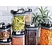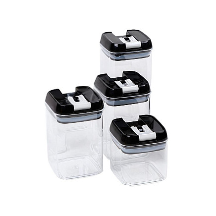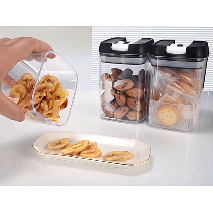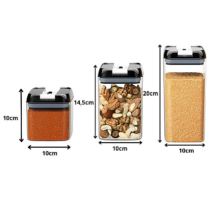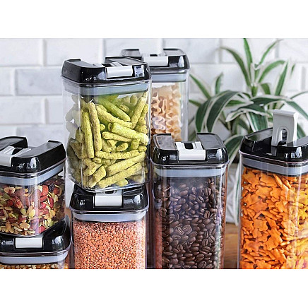 This set of kitchen containers is a reliable solution for storing food at home. Thanks to the tight-fitting lids with seals and strong latches, products stay fresh for longer. The containers are ideal for storing pasta, rice, breakfast cereals, coffee, tea, spices, sweets and biscuits. The transparent walls allow you to quickly check the contents without having to open them.