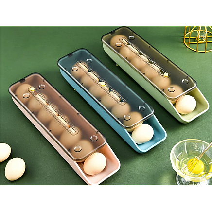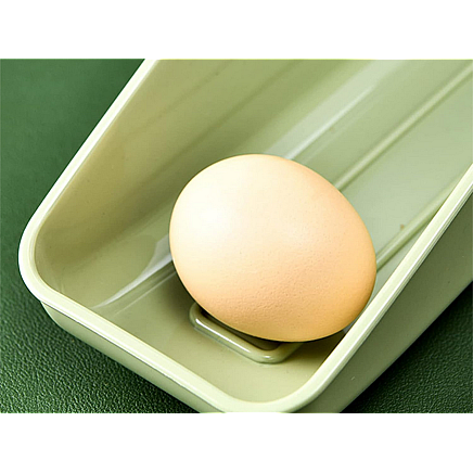 Our egg container is an indispensable tool in your kitchen. It will hold approximately 7 eggs depending on the size of the eggs, providing them with a safe and functional storage space. Plus, the eggs automatically slide down when you take one, making it easy to access.