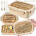 The set includes a spoon, fork, knife and chopsticks, which are stored in a special container lid.