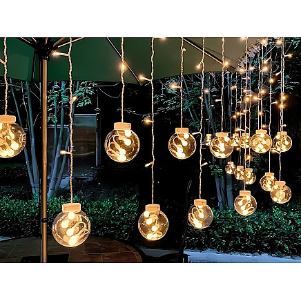 Ziemassvētku Aizkars, Virtene, Lampiņas, 138 LED, IP44, Silti Balts
