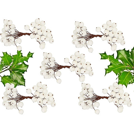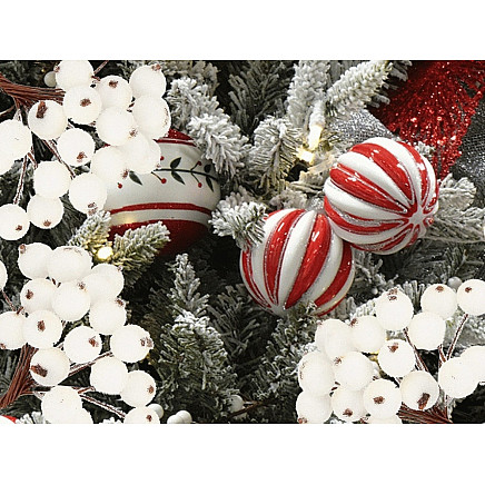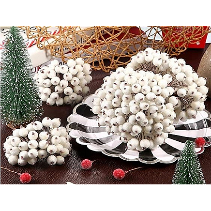 Ziemassvētku Dekors Rotājumi Sarmots Baltais Pīlādzis, 5 Pušķi, 200 Bumbiņas, Sala...