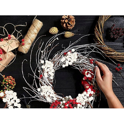 The ornament is made of wires that can be formed in any way you like. The rowan beads are made of lightweight polystyrene. The whole is covered with transparent plastic, which gives the effect of shiny natural frost.