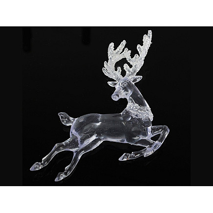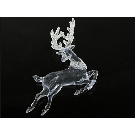 The reindeer is made from a transparent material that imitates crystal, giving it a luxurious look. An additional decorative element is the antlers covered in delicate glitter, which shines beautifully and adds to the overall elegance. The pendant is perfect both on the Christmas tree and as a window decoration, adding a classic Christmas charm to any interior.