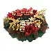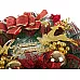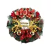 Tradicionālās Ziemassvētku krāsas. Vainags ir ļoti bagātīgi dekorēts.