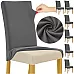 Key features of RUHHY dark gray chair covers:soft, elegant material made of high-quality polyester and spandex - a combination of durability, pilling resistance and elasticity