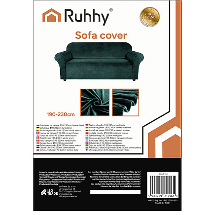 Key features of the RUHHY green sofa cover:- soft and elegant velour with high elasticity