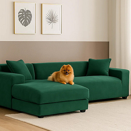 RUHHY corner sofa cover – bottle green elastic velvet 190 - 230 cm