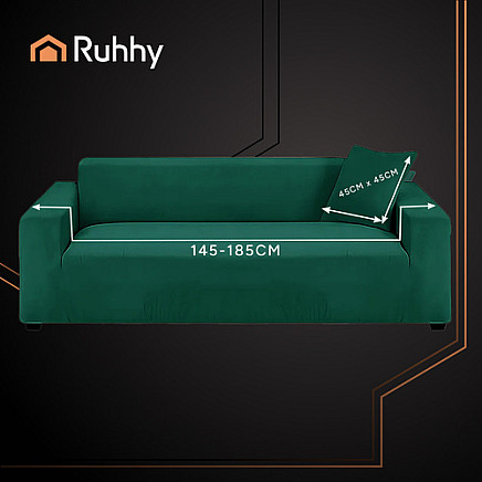 Key features of the RUHHY green sofa cover:- soft and elegant velour with high elasticity