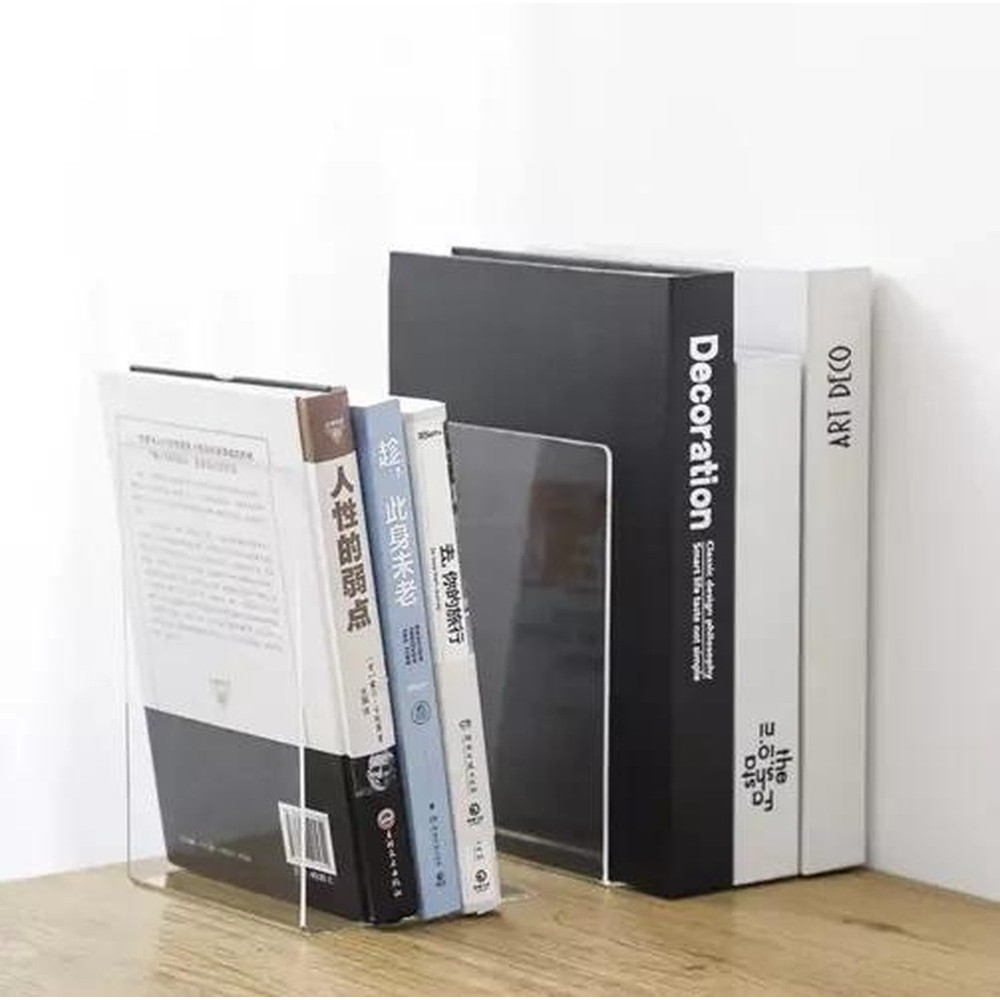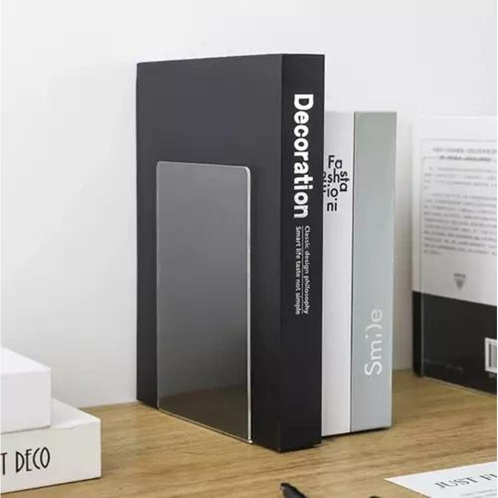 - LARGE SET + PROTECTIVE FILM - the set includes 6 bookends. This set allows you to display books without worrying about them tipping over or deforming . Each support is secured with a protective film for transport. The film is a barrier, e.g. against scratching during transport.