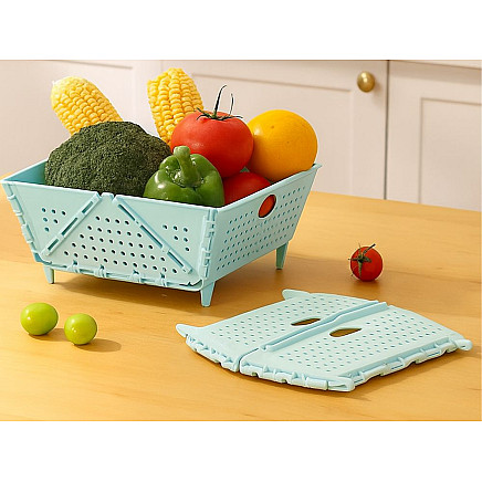 The basket is ideal for washing, draining and storing fresh food. You can wash fruit, vegetables, pasta or salad in it and then serve them straight onto the table. The removable insert with holes allows water to drain freely, and when removed, the basket can be used as a spacious tray. The foldable design allows you to adjust the height of the basket to the amount of products, and when folded, it takes up minimal space.
