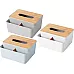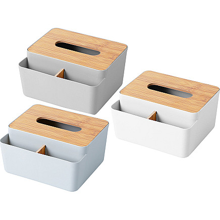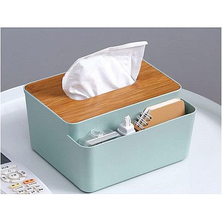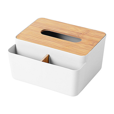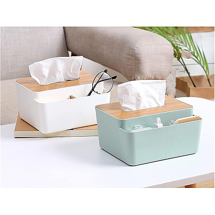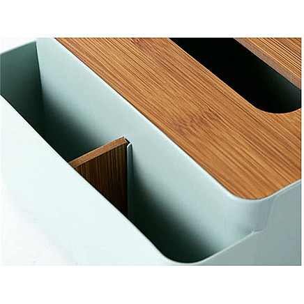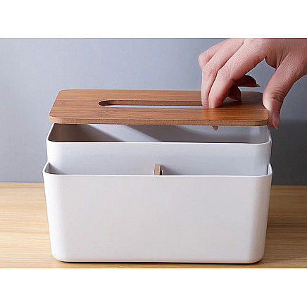 The modern tissue box is a combination of functionality and stylish design that will fit perfectly into any interior design. Made of durable plastic and an aesthetically pleasing lid made of natural bamboo, it is a practical addition to the living room, bedroom, bathroom or office. The smooth edges and classic form make the container look exceptionally neat and elegant.