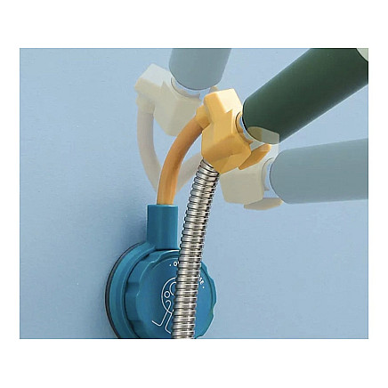 To fix the bracket, it must be pressed firmly onto the smooth surface, then turn the knob as far as it will go towards the word CLOSE. The shower attachment can be freely adjusted, placing the handset in any position.