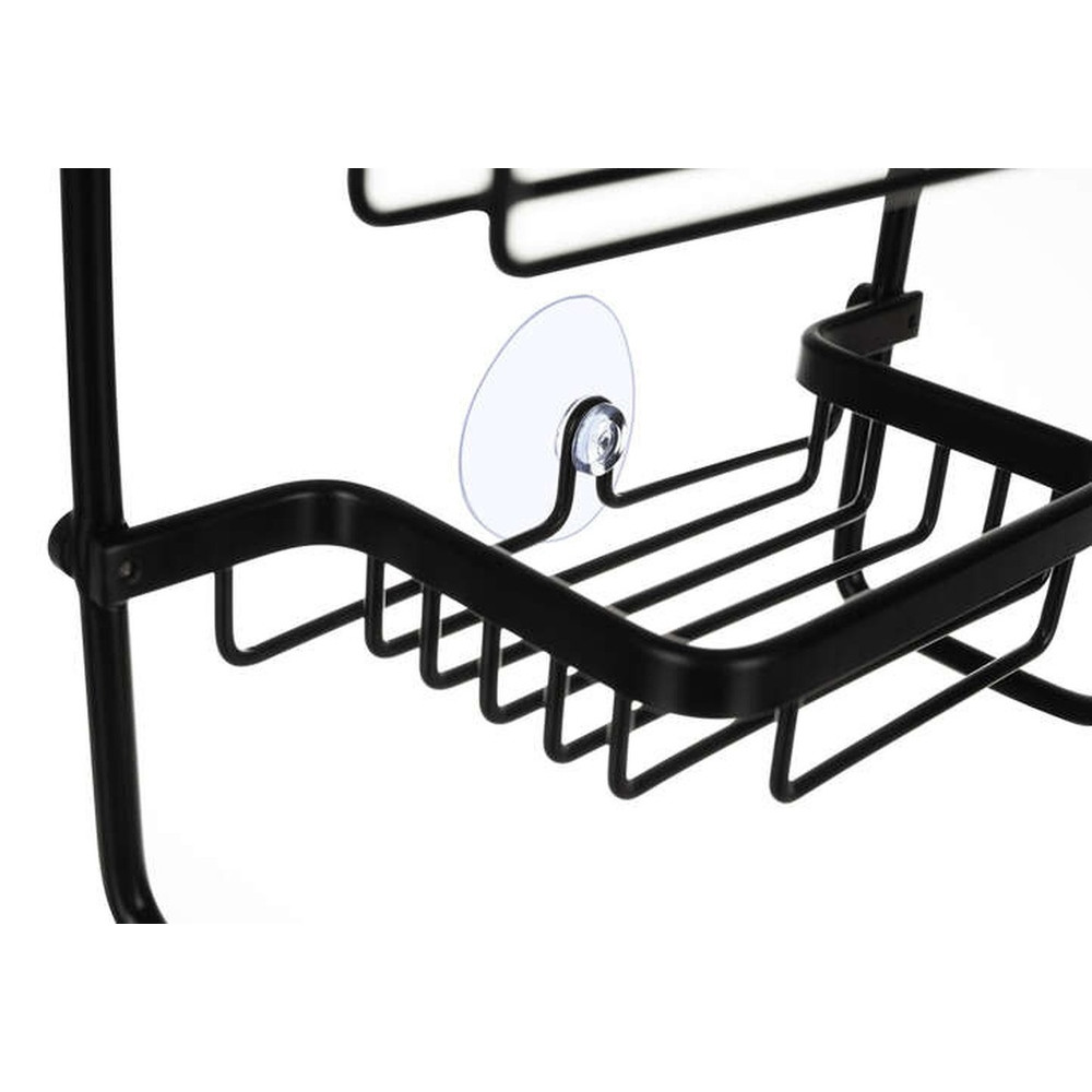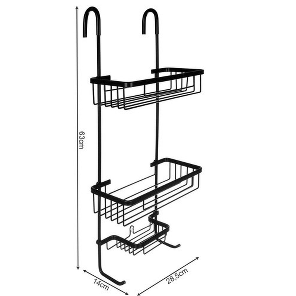 - SPECIFICATION – material: aluminum + ABS coated; color: black; stainless steel: yes; suspended: yes; stabilization with suction cup: yes; spacing: 20.5cm; number of shelves: 3; dimensions: 63/14/28.5cm; weight: 0.65kg; weight in packaging: 0.89kg.