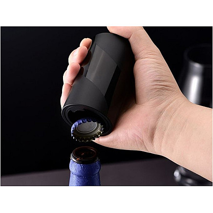 The opener is quick and easy to use - simply place the opener vertically on the closed bottle and press down. The opener will spring back with the cap by itself.
