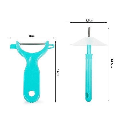 A versatile peeler for peeling vegetables and fruit. The knife is equipped with a sharp blade that will ensure excellent cutting performance for a long time.It also comes with a special handle with a special peg that prevents your hands from getting dirty when peeling.