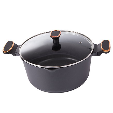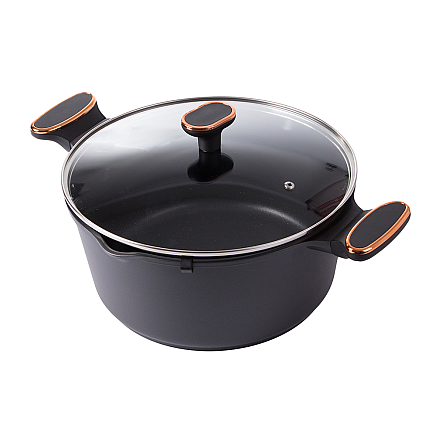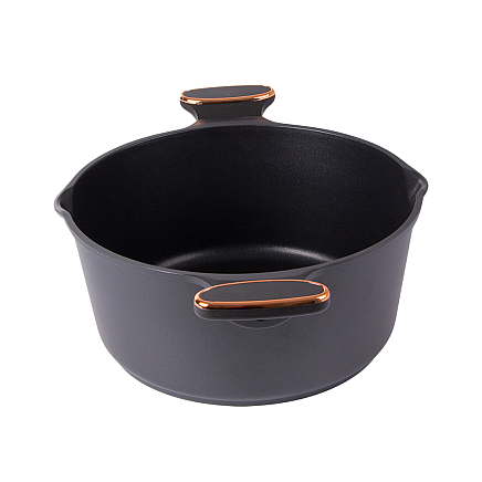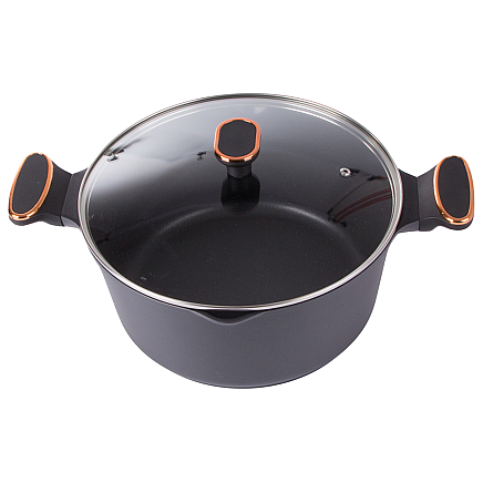 Asaucepan with lid made of die-cast aluminium with non-stick coating. It is the perfect vessel for any kitchen and is ideal for frying, boiling and stewing food alike.