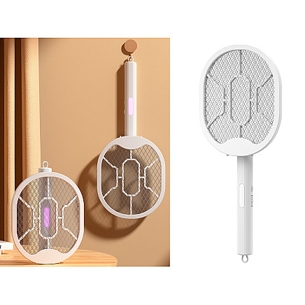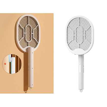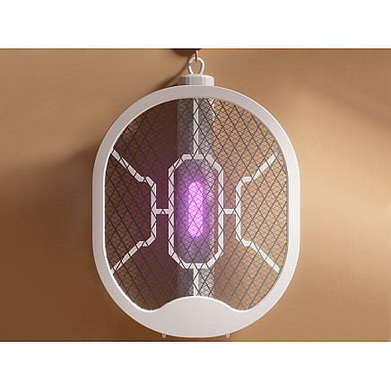 It can be unfolded into the form of a classic racket or erected and hung on the wall as a silent and effective insect light.