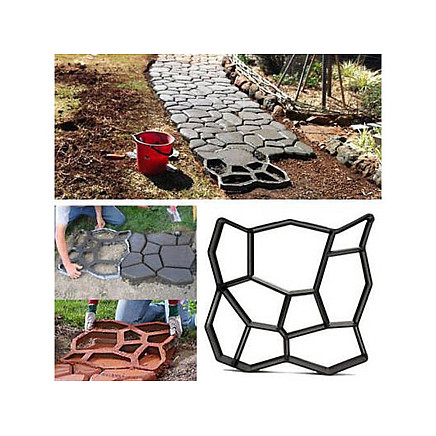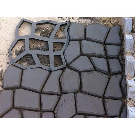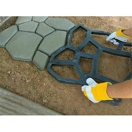 A reusable concrete mould made of durable material, great for creating paving stones for a footpath yourself.