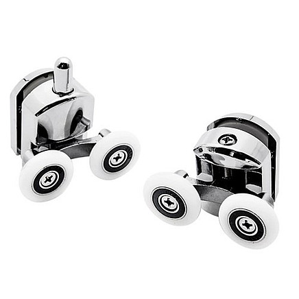 - ON BEARINGS - the rollers are mounted on ball bearings and are suitable for glass panes 4-6 mm thick, they fit various types of shower cabins that use this solution. Thanks to the tilting design, the rollers and wheels adapt to the shape of the guide. They fit both square and semicircular shower cabins .