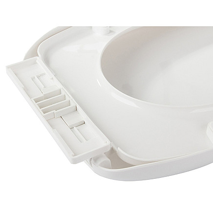 The toilet seat is equipped with an advanced cushioning mechanism that makes the descent of the seat quiet and controlled. No more noisy slamming or accidental banging.