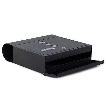 It has an additional container for newspapers, as well as 3 transparent openings through which you can check the contents of the box and a window for a personal note.