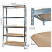 - 875 KG – the maximum load on one shelf is 175 kg! Which adds up to 875 kg - you can easily place all kinds of equipment or many other products in it. The shelf is ideal for rooms such as a basement, garage, warehouse or shop. It is made of galvanized steel and thick 4mm MDF boards, additionally the shelf has a crossbar that will increase its stability and durability. and will ensure many years of use and full satisfaction with the product.