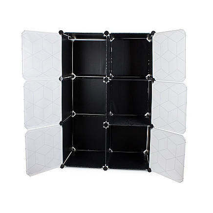 The modular wardrobe cabinet will fit perfectly at home in a dressing room or hallway. It will also work well in a company or office. In addition, the wardrobe has a very aesthetically pleasing design with a nice pattern, so it will fit into the look of any home. It has 6 segments, which can be joined together and stacked, as well as placed next to each other depending on your needs and space available. One part of the wardrobe can be used for hanging clothes, as it has been equipped with a rod for hanging hangers It is also light and stable