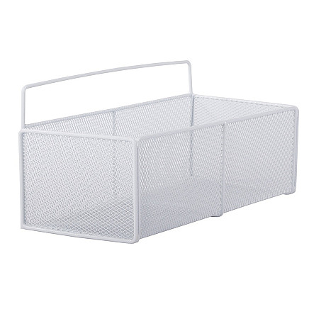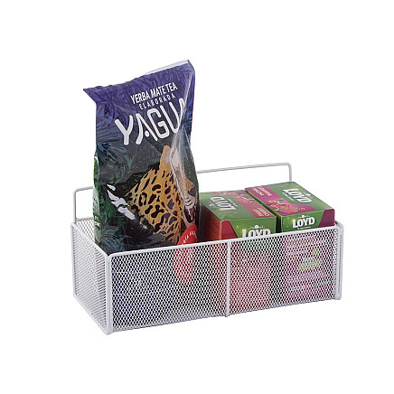 The functional metal basket made of fine mesh is the ideal solution for better organisation in the kitchen, bathroom and beyond.