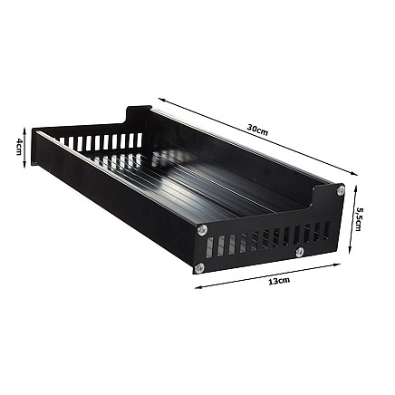 The shelf is stainless steel, made of black powder-coated aluminium, which positively contributes to the stability and robustness of the entire structure.