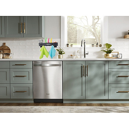The shelf is equipped with two cutlery bins and a space for storing knives.