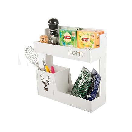 The organiser, a hanging shelf with a lightweight construction made of plastic (compressed foam) will prove useful in the kitchen, bathroom, etc.