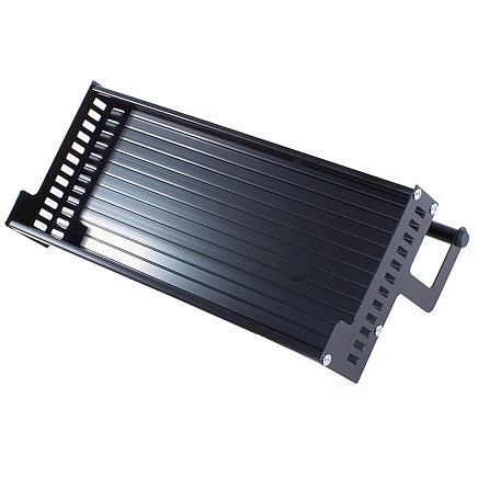 The shelf is stainless, made of black powder-coated aluminium, which positively influences the stability and solidity of the whole structure.