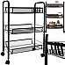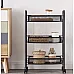 - DURABLE HIGH-QUALITY IRON CONSTRUCTION - mobile shelf is made of durable and solid iron, powder coated for elegant, black color . Iron guarantees resistance to corrosion and damage , which makes the shelf durable and ideal for everyday use in various conditions, both in the kitchen, bathroom and office. Powder coating additionally protects the surface , giving it an aesthetic, matte appearance.