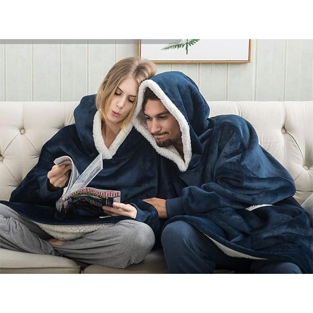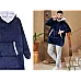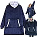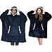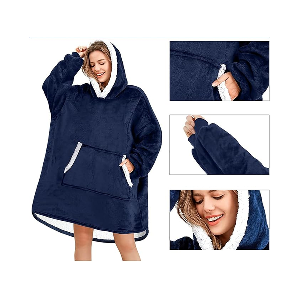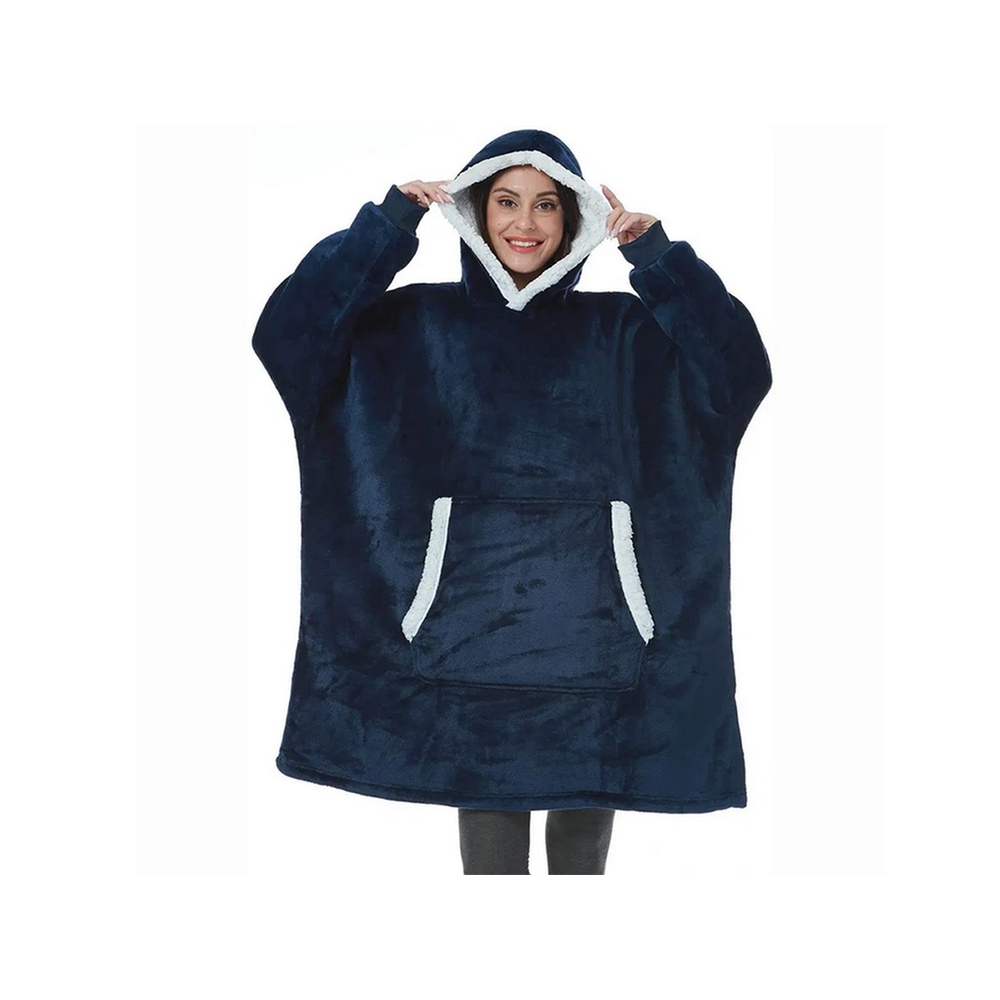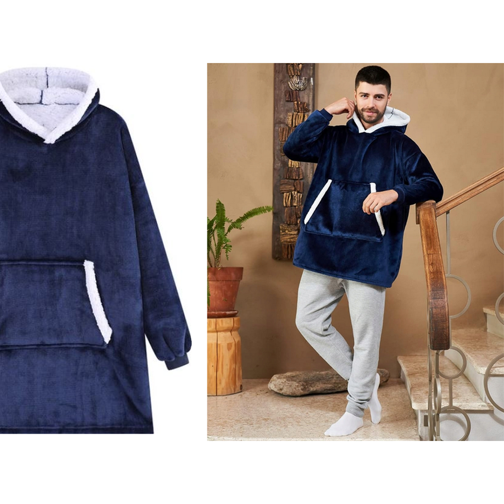 Silts oversize džemperis-sega 2in1 ar kapuci un kabatu, tumši zils