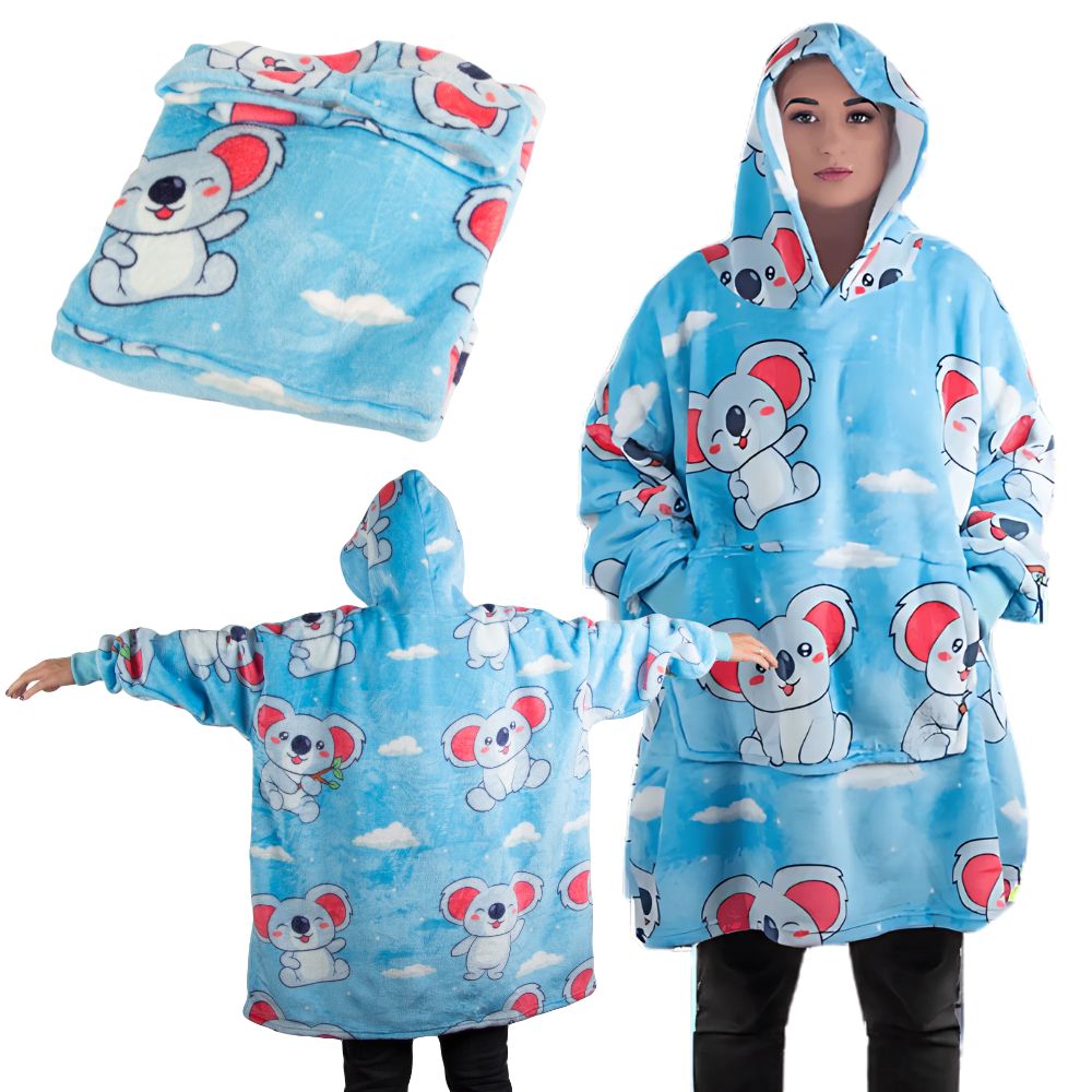 Silts oversize džemperis-sega Koala 2-in-1 ar kapuci, zils