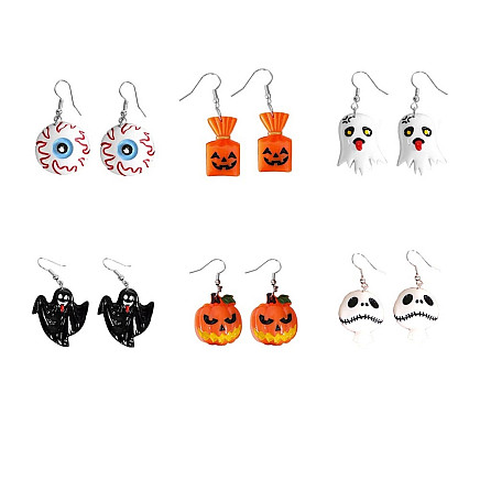 Halloween auskari komplekts, 6 pāri, ķirbis, spoks, acs, konfekte