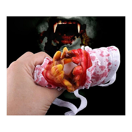 The centrepiece of the mask is an image of a bloodthirsty mouth with teeth that look menacingly sharp and covered in blood. The outer part of the mask imitates blood spilled all over the material, which adds to its dark and disturbing character. This makes it the perfect accessory for Halloween.
