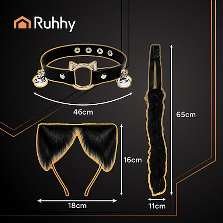 Kospleja komplekts Ruhhy 3 daļas ausis, aste un čokers, melns 26587