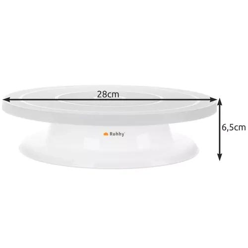 - SPECIFICATIONS – White color; material: PP, others: TPR + 3 PP cake decorating spatulas; leg diameter: 23cm; dimensions (diameter x height): 28 x 6.5cm; weight: 221g; weight in package: 415g.