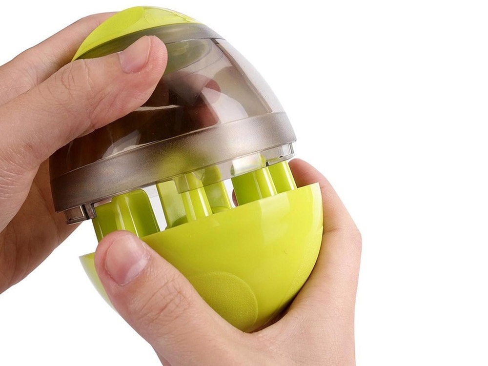 An interactive toy for dogs and cats that any pet will enjoy. There are holes in the top to release the smell of the treats which encourages your pet to play. Inside the container you can pour your favourite dry food. When the pet smells and sees the treat inside, it tries to get to it by setting the toy in motion.