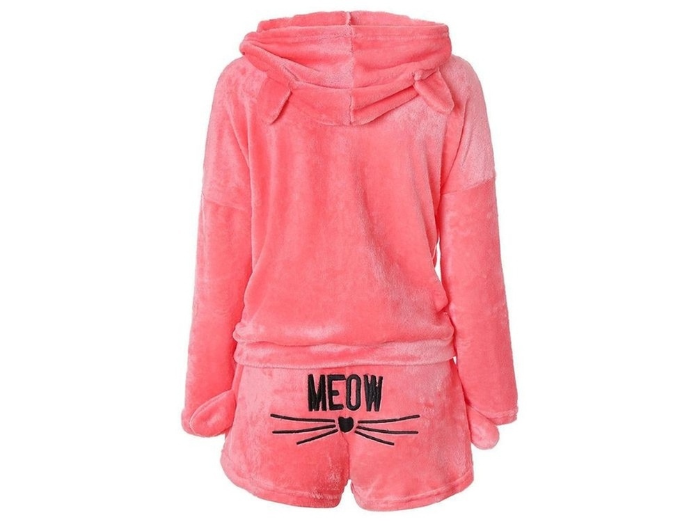 Silts plīša pidžamas komplekts sievietēm ar kapuci un šortiem XL, rozā