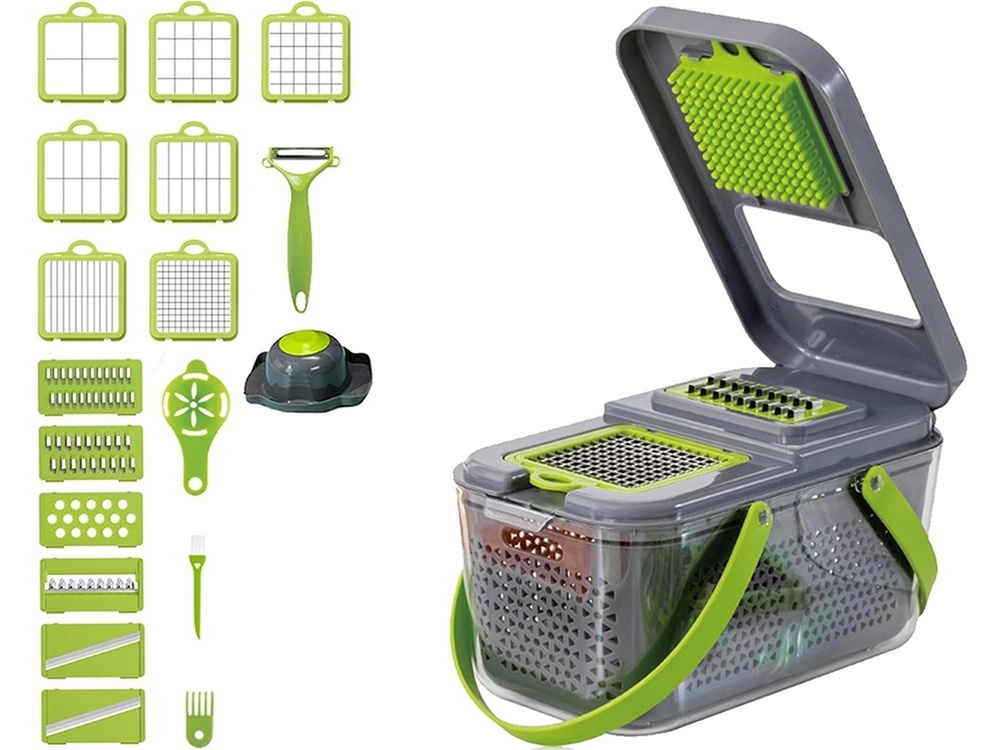 The multifunctional slicer is the perfect appliance for every kitchen. It allows you to easily slice, chop and grate a variety of ingredients for your favourite dishes. The incredible variety of 13 different inserts allows you to adjust the thickness and shape of the cut to your preference, plus you'll find an egg yolk strainer and vegetable peeler included. Start enjoying convenience and precision in the kitchen today!
