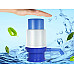 Universālais rokas sūknis ļauj iepildīt ūdeni no galona pudeles glāzē vai citā traukā.