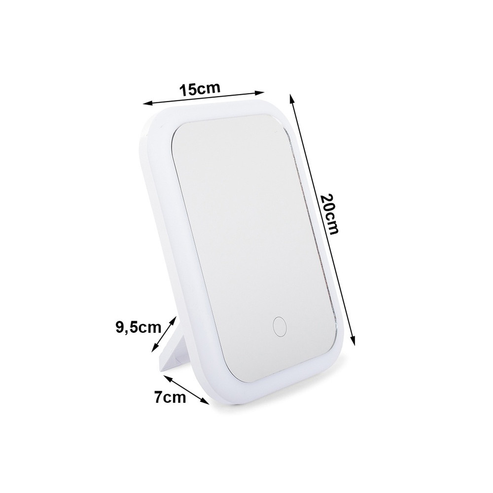 Darbina ar trim AA baterijām vai, pieslēdzot USB kabeli, un to vada spoguļa korpusā iebūvēts skārienjutīgs slēdzis.