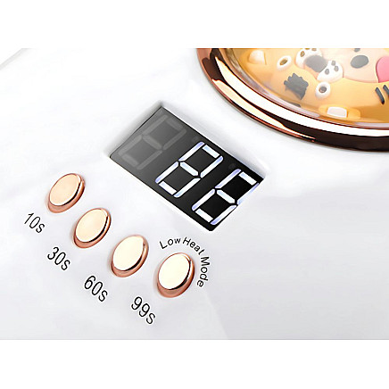The automatic motion sensor makes it easy to use - simply slide your hand in and the lamp turns on by itself. You can choose between 4 time modes: 10s / 30s / 60s / 99s. The model also has a removable stand for convenient toenail curing and easier cleaning after use.
