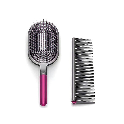 Komplektā iekļautā ķemme lieliski papildina birsti, kas ir noderīga matu ieveidošanai, atdalīšanai un matu kopšanas līdzekļu uzklāšanai. Abi priekšmeti ir izgatavoti no izturīgiem un viegliem materiāliem, kas nodrošina ērtu lietošanu un vieglu tīrīšanu. Pateicoties kompaktajam izmēram, komplektu ir viegli paņemt līdzi jebkur - rokassomiņā, sporta zālē vai ceļā.