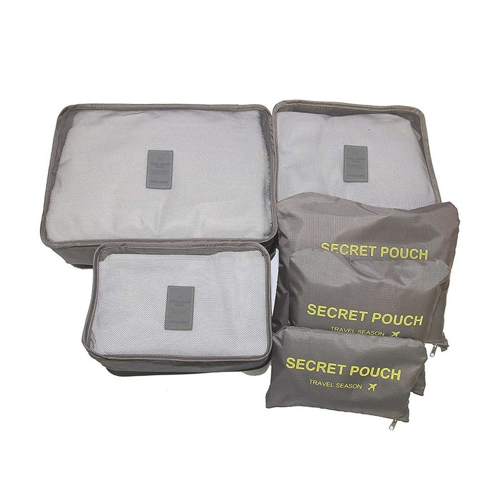 A set of six travel organisers, great for packing all the things you need such as underwear, shoes, clothes or cosmetics and for storing laundry for washing.