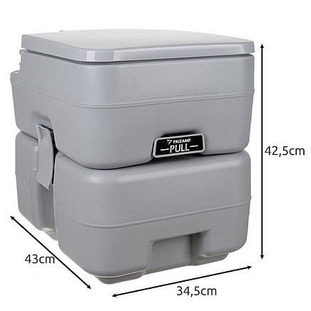 - SPECIFICATION: color: gray; material: HDPE, ABS, PP, rubber; waste tank capacity: 20l; water tank capacity: 12l; load capacity: 150kg; dimensions: 42.5 x 34.5 x 43cm; inner seat diameter: 25.5 x 22cm; weight: 4.3kg; weight in packaging: 5.1kg