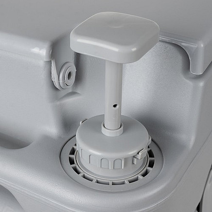 - TIGHTNESS AND SAFETY - The portable toilet has been designed to provide maximum protection for the user from unpleasant situations related to its use. In the middle of the lower part there is a large opening through which waste flows into the tank. This opening is secured with a special flap covered with silica gel, which additionally increases tightness and prevents unpleasant odors from getting outside . At the back of the lower tank there is a large opening, secured with a tight cap . This opening allows for quick and safe emptying of the tank from waste .